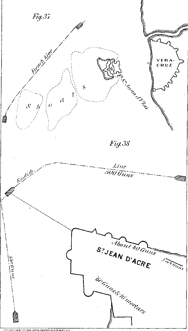 With respect to sea fronts, which can be reached only by guns afloat, the case is very different. They are usually casemates of masonry, not masked by earthen works. Whether the increased efficiency of projectiles thrown by ships and floating batteries now require a resort to this mode of protecting masonry on the water fronts of fortifications, is a question well worthy of discussion. This subject has already been alluded to in the Note on Sea-coast Defences, and it is there shown that no facts have yet been developed which require or authorize any change in our present system.