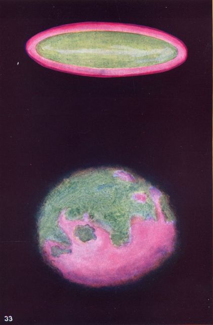 The whole form is seen projected against a coruscating background of many colours, which is in reality a cloud surrounding it upon every side, caused by the vibrations which are pouring out from it in all directions.