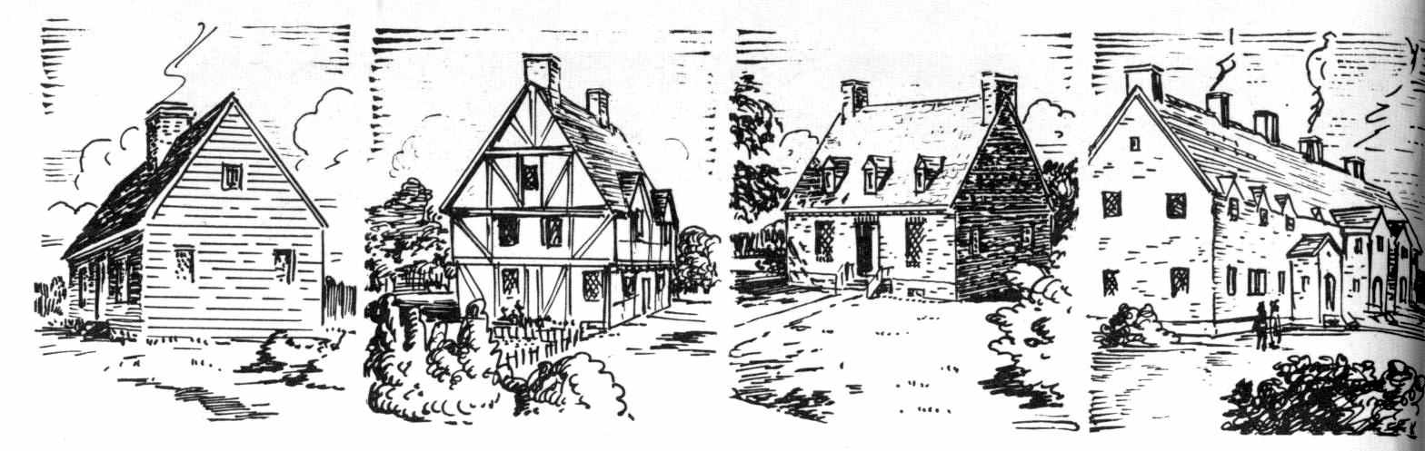 During its whole century of existence, the settlement was never an integrated town. The first frame houses quickly rotted away or succumbed to frequent fires. Brick buildings were soon erected, but probably not twoscore ever stood at one time during the 17th century.