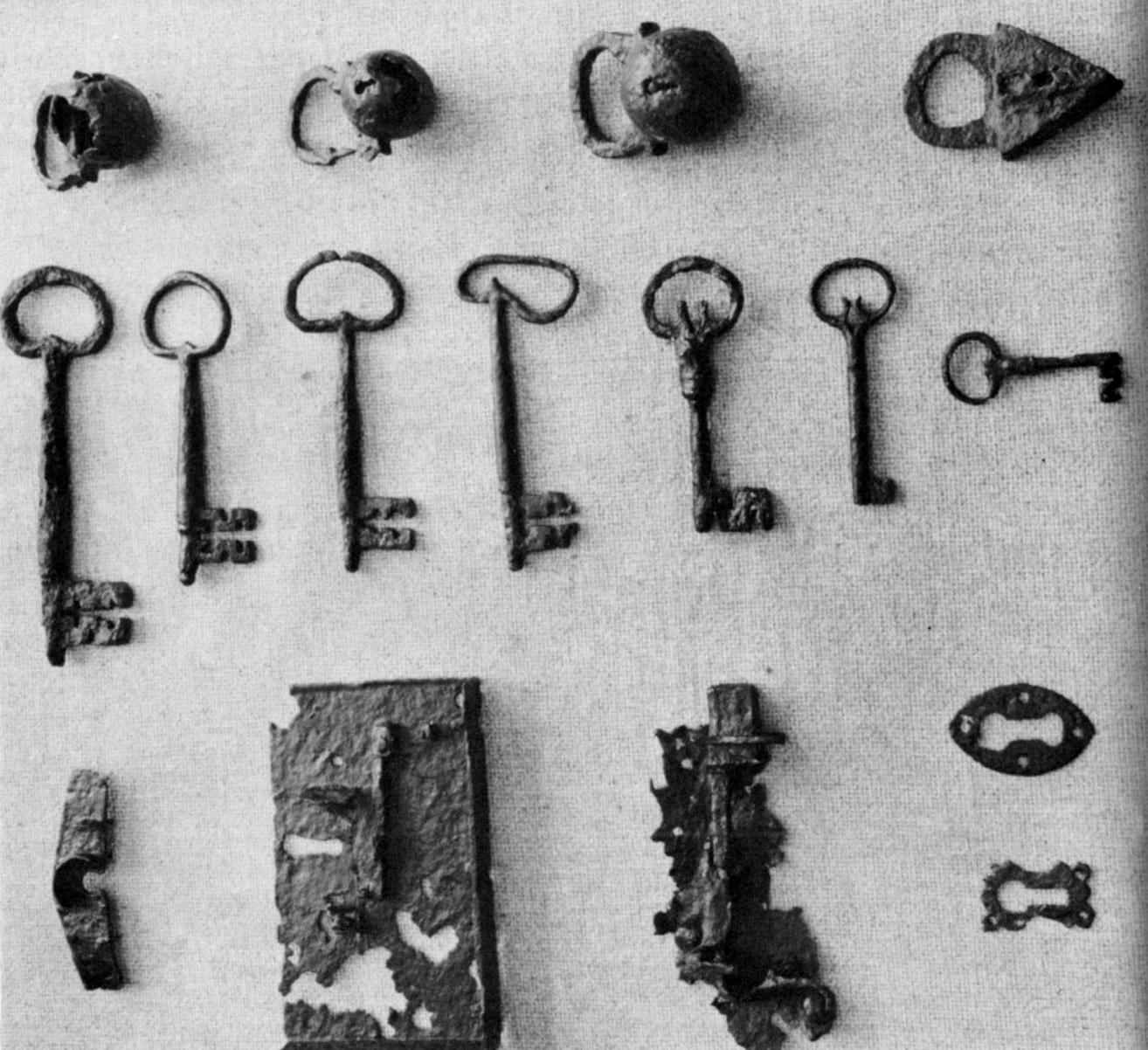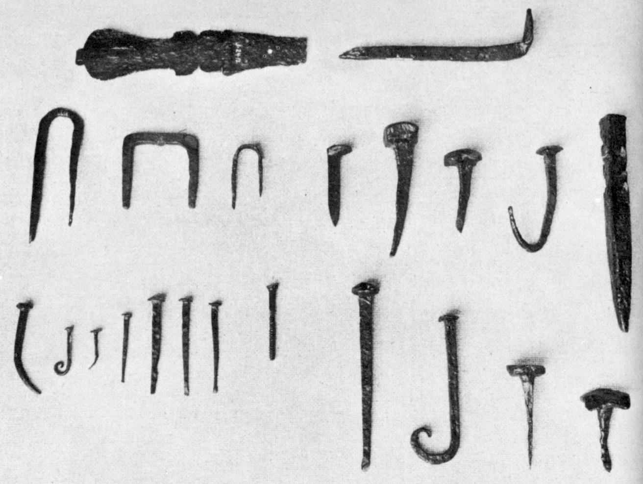 Only a few parts belonging to heavy farming implements have been unearthed, including a few ploughshares and small metal fragments from wagons, carts, and harrows.