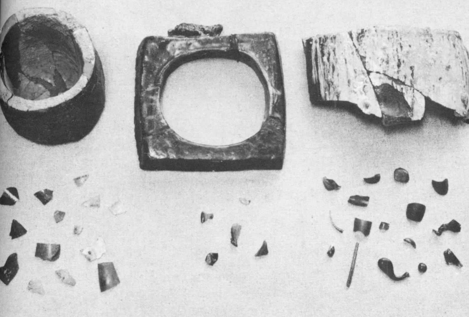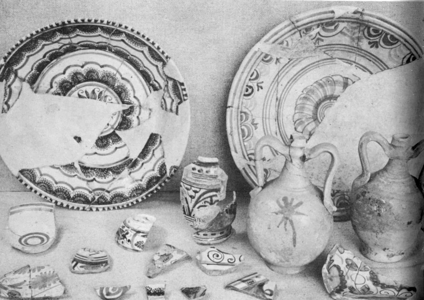 By 1956 a total of 140 structures—brick houses, frame houses with brick footings, outbuildings, workshops, wells, kilns, and even an ice storage pit—had been recorded. To help unravel the mystery of landholdings (sometimes marked by ditches), 96 ditches of all kinds were located, and hundreds of miscellaneous features from post holes to brick walls were uncovered. Refuse pits were explored meticulously, since before the dawn of history man has left his story in the objects he discarded.