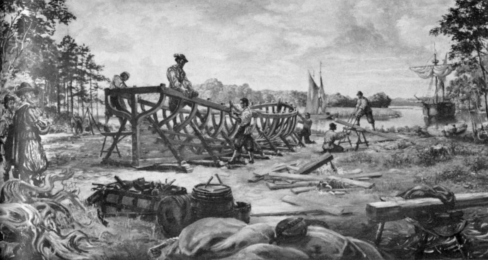 Many small boats were built at Jamestown. They were built by English shipwrights and carpenters, who came from a long line of efficient craftsmen. These small vessels afforded the principal means of transportation through the uncharted wilderness tidewaters of Virginia. They were used for fishing, trade, and discovery. A few small handwrought iron tools used by Jamestown boatbuilders have been excavated on the historic island.