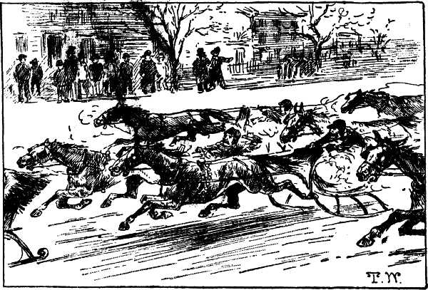 And so, with any amount of good-natured chaffing from the drivers of the "fast uns," and from many that lined the roads, too,—for the day gave greater liberty than usual to bantering speech,—the speedy ones paced slowly up to the head of the street with Old Jack shambling demurely in the midst of them.