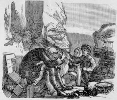 Lotta meni ja palasi hetken kuluttua. – ”Heillä on vain pieni poika ja isonlainen tyttö”, sanoi hän. ”Tässä on tytön paita ja raitainen pyhähame sekä sukat ja kengät.”
