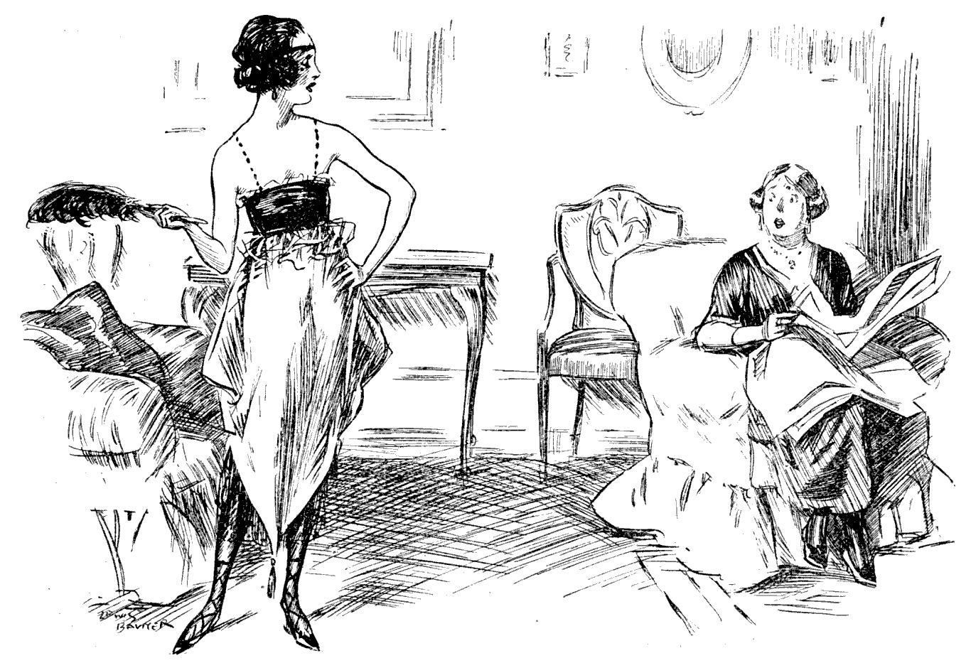Miss Messalina Stoot, who punctuated her remarks with the clashing of a pair of cymbals, observed that as a thorough-going Dadaist she had no sympathy with the half-hearted attitude of the Chairman. It was a battle between Dada and Gaga, and emphatically Dada must win.