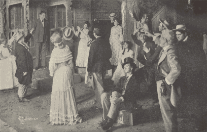 At a point upon the main road a short distance beyond the square, where the grocery store was situated, stood a young man. This young man was Ezekiel Pettengill, one of the well-to-do young farmers of the village. His coat collar was turned up and his cap pulled down over his ears, for the air was piercing cold and a biting wind was blowing. Now and then he would walk briskly back and forth for a few minutes, clapping his hands, which were encased in gray woollen mittens, in order to restore some warmth to those almost frozen members. As he walked back and forth, he said several times, half aloud to himself, "I don't b'lieve she's comin' anyway. I s'pose she's goin' to stay ter hum and spend the evenin' with him." Finally he resumed his old position near the corner and assumed his previous expectant attitude.