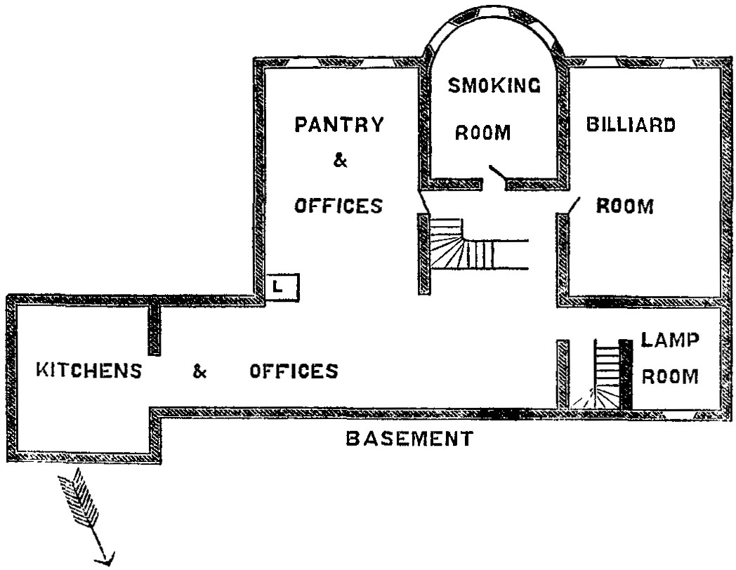 1. The rooms spoken of in the text as "the library," and the "upstairs," or "wing" smoking-room, are those marked in the Plan as the "morning-room," and the bedroom to the extreme east in the wing.