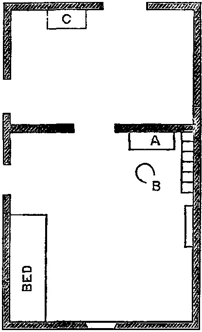 [D] We have since ascertained by experiment that no sound short of beating with a hammer on the wall itself is audible between the two rooms; also, that the upsetting of a metal candlestick on the bare boards in the nearer servants' room (over No. 1) cannot be heard in No. 8.