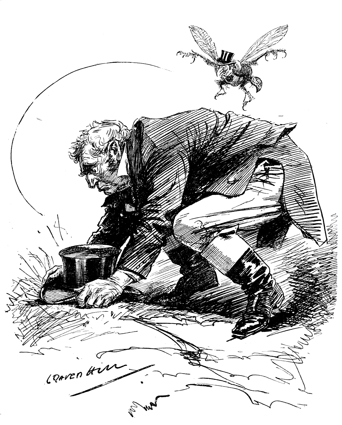 After this third failure to house the bird I threw convention to the winds and took to accosting utter strangers in the street with, "Will you have a raven?" I went rides in trams and tubes and canvassed the passengers. "Not to-day, thank you," was the response, save in a few instances. One man invited me to ask him again and he would do me in. A lady to whom I propounded the query as we were descending the moving staircase side by side precipitated herself forward with such haste that but for the intervening travellers she must have fallen headlong to the bottom. The mother of a family to whom I appealed shook her head politely and said she was obliged to me for the offer, but it was hard enough to pay for butcher's meat; she couldn't afford poultry.