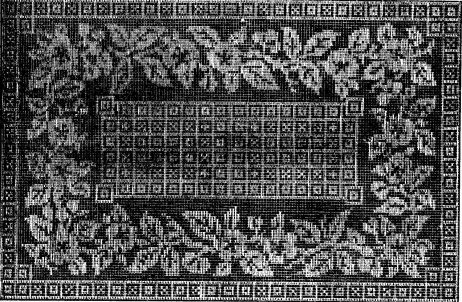 Draw the pattern from the engraving, a section of it being given the full size. The paper must then be lined with alpaca. Should a short piece only be required, the pattern should at once be made of the full length; if not, several may be drawn. From the closeness of the work it is impossible to work twice over the same paper.