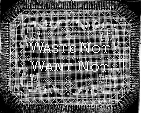 THE MARKS USED IN CROCHET RECEIPTS.—These are very simple when understood. They are printers' marks—asterisks, crosses, daggers, and sometimes one or two others. They are used to mark repetitions, and save space. The principal thing to observe is, that in every row or round, if one of any kind is used, a second, similar one, is sure to be found; and that the repetition occurs between the two, however far distant apart. Suppose a row of a pattern to be written thus:—X 2 d.c., 4 ch., miss 4, * 5 d.c., 1 ch., miss 1, * three times, 5 d.c., X, * twice; it would, at full length, be—2 d.c., 4 ch., miss 4, 5 d.c., 1 ch., miss 1, 5 d.c., 1 ch., miss 1, 5 d.c., 1 ch., miss 1, 5 d.c., 2 d.c., 4 ch., miss 4, 5 d.c., 1 ch., miss 1, 5 d.c., 1 ch., miss 1, 5 d.c., 1 ch., miss 1, 5 d.c. It will be seen that one repetition often occurs within another, as in the stitches between the asterisks. Another mode of shortening receipts can be used only where a row has a centre both sides of which correspond; the latter being the same as the former, worked backwards. Then the letters b, a, are used, to mark that in the latter part of the row you reverse the instructions. b, 7 d.c., 3 ch., miss 2, 1 d.c., 2 ch., miss 1, a, 1 d.c. (the centre stitch), would be, 7 d.c., 3 ch., miss 2, 1 d.c., 2 ch., miss 1, 1 d.c., miss 1, 2 ch., 1 d.c., miss 2, 3 ch., 7 d.c. These letters and the printers' marks are equally used in knitting. It is easy to see how much space is gained by the use of these abbreviations, a knowledge of which is easily acquired. Probably many of our friends are already familiar with the substance of this preliminary lesson; but as daily experience convinces us that many are still ignorant of the principles of crochet, we trust the good-nature of the adepts will lead them to excuse this occupation of a page, in consideration of the benefit it will be to their less fortunate friends.