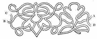 We give a diagram showing the manner in which lines of braid cross and intersect each other, to form the pattern; and we would observe, en passant, that each line is done with a separate piece of braid, that from A to B being one piece, and from C to D another.