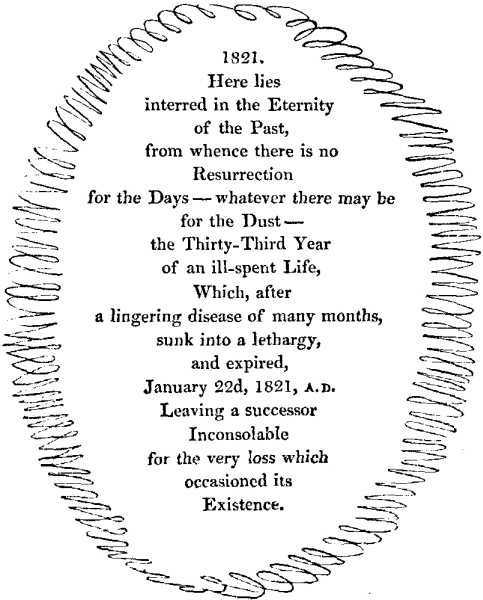 "The death of Waite is a shock to the—teeth, as well as to the feelings of all who knew him. Good God, he and Blake[12] both gone! I left them both in the most robust health, and little thought of the national loss in so short a time as five years. They were both as much superior to Wellington in rational greatness, as he who preserves the hair and the teeth is preferable to 'the bloody blustering warrior' who gains a name by breaking heads and knocking out grinders. Who succeeds him? Where is tooth-powder mild and yet efficacious—where is tincture—where are clearing roots and brushes now to be obtained? Pray obtain what information you can upon these 'Tusculan questions.' My jaws ache to think on't. Poor fellows! I anticipated seeing both again; and yet they are gone to that place where both teeth and hair last longer than they do in this life. I have seen a thousand graves opened, and always perceived, that whatever was gone, the teeth and hair remained with those who had diedPg 33 with them. Is not this odd? They go the very first things in youth, and yet last the longest in the dust, if people will but die to preserve them! It is a queer life, and a queer death, that of mortals.
