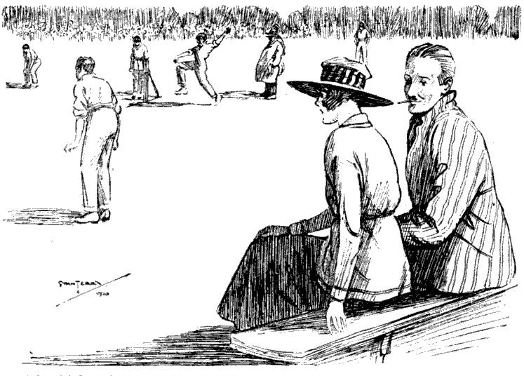 Upon the greensward stood orderly rows of well-washed chairs, each with B.O.F. neatly stencilled upon its back. On this day, however, and at this hour (12.30 p.m.) scarce a B.O.F. was visible; each was hidden by a well-dressed visitor. And between the orderly rows of well-dressed visitors paraded orderly pairs of superbly-dressed visitors.