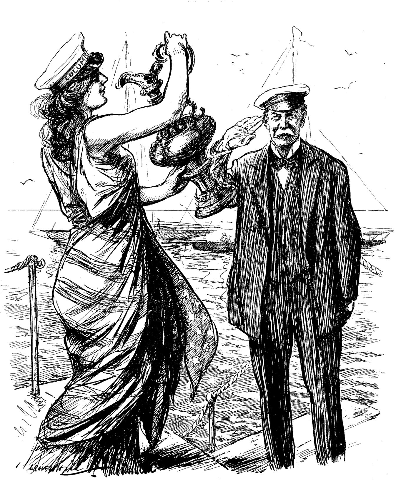 "Among celebrities who will watch British seamanship matched against American are Franklin D. Roosevelt, Assistant Secretary of the Navy, and Sir Auckland Geddes, British Admiral to the United States."—Canadian Paper.