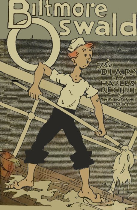 March 1st. Subjected myself to the intimate scrutiny of another doctor this morning. I used my very best Turkish bath manners. They failed to impress him. Hospital apprentice treated me to a shot of Pelham "hop." It is taken in the customary manner, through the arm—very stimulating. A large sailor held me by the hand for fully fifteen minutes. Very embarrassing! He made pictures of my fingers and completely demolished my manicure. From there I passed on to another room. Here a number of men threw clothes at me from all directions. The man with the shoes was a splendid shot. I am now a sailor—at least, superficially. My trousers were built for Charlie Chaplin. I feel like a masquerade.