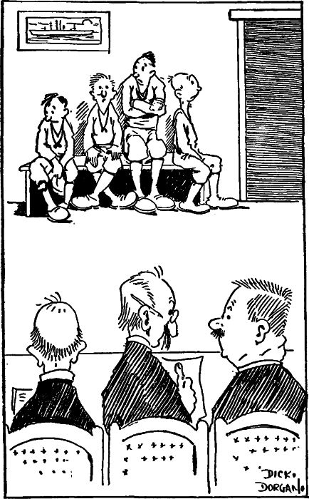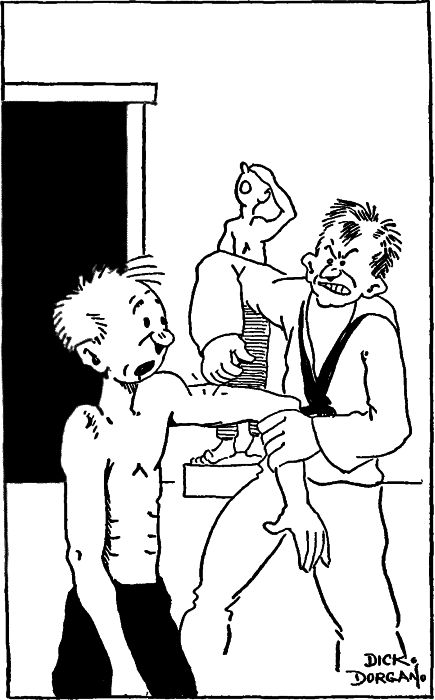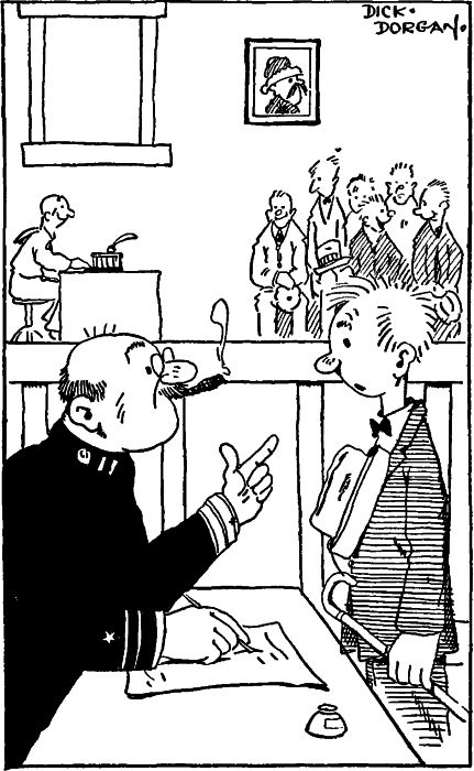 "Never have I seen a more unpromising candidate in all my past experience," said the doctor moodily when I presented myself before him, and thereupon he proceeded to punch me in the ribs with a vigor that seemed to be more personal than professional. When thoroughly exhausted from this he gave up and led me to the eye charts, which I read with infinite ease through long practise in following the World Series in front of newspaper buildings.