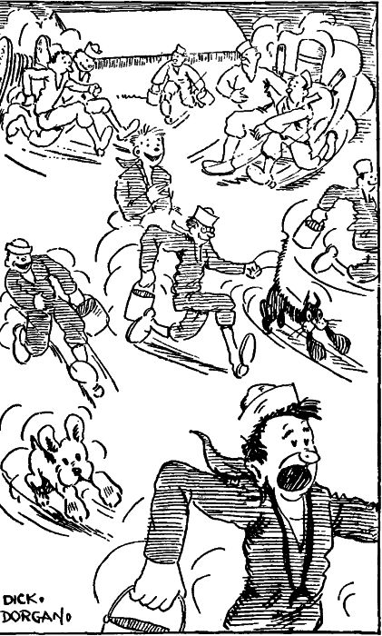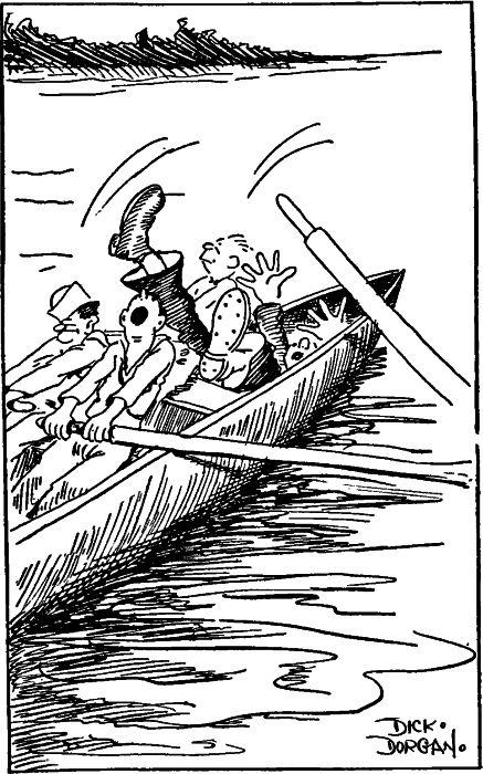 "I clewed it," said I promptly, dimly recalling the impassioned instructions an enthusiastic friend of mine had shunted at me throughout the course of one long, hot, horrible, confused afternoon of the past summer—my first, and, as I had hoped at the time, final sailing experience.