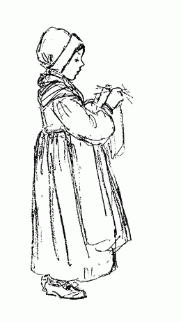 "Let this be a lesson to you, then," said the Goodwife, loosening her clasp and picking [page 27] up the wet clothing. "You know well about the tide! Nancy, child, why art thou so wild and reckless? Thou art the cause of much anxiety."