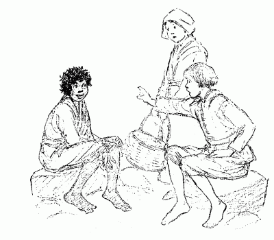 "'T will be but a sad holiday," said the Goodwife. "Though he is but a blackamoor, the lad hath found a place in my heart, and I grieve that evil hath befallen him."