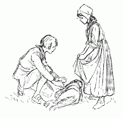 "Aye," answered the Goodman. "I did carry a burden and had like to forgot it. I dropped it by the door of the cow-shed. Go thou and bring it in."