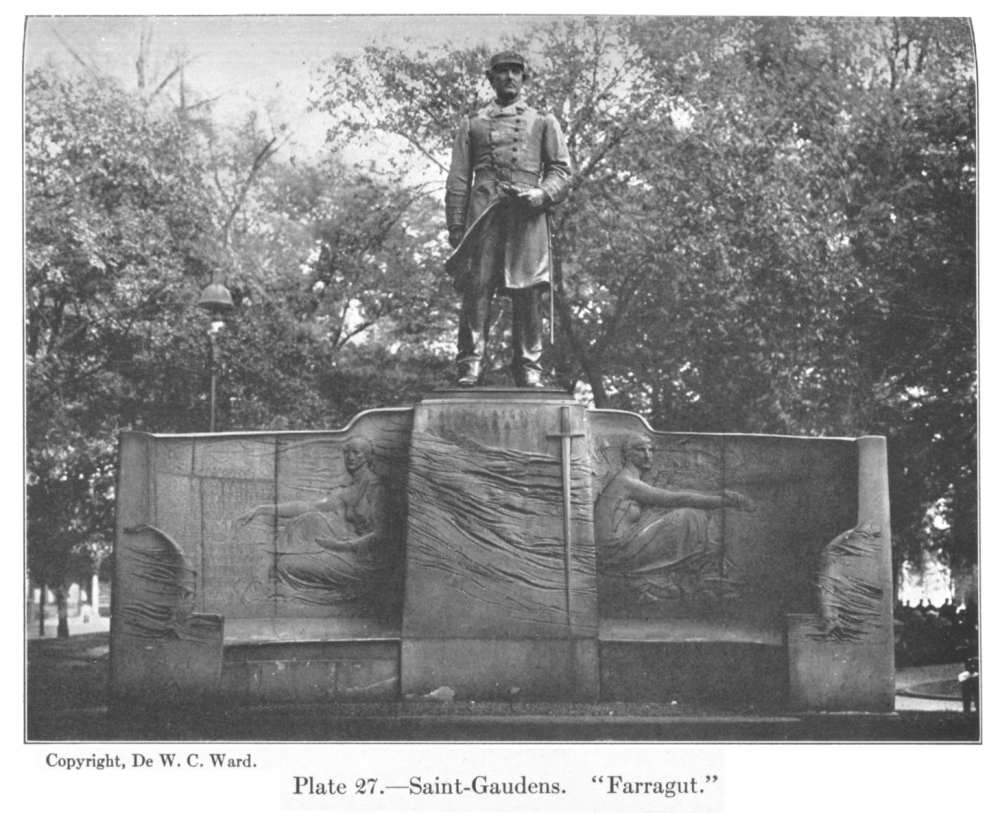 From 1875 to 1877 he had a studio in New York, where he seems to have executed some of his earliest portrait reliefs. During these years he came into contact with La Farge, for whom he turned painter and aided in the execution of the decorations of Trinity Church in Boston. It was at this time, also, that he received his first commissions for important public work, those for the Farragut statue in Madison Square, the Randall at Sailors' Snug Harbor, and the angels for Saint Thomas's Church. He had married Augusta F. Homer in 1877, and in that year, taking his bride and his commissions with him, he returned to Paris, feeling, as many another young Paris-bred artist has felt, that there only could such important works be properly carried out. The "Farragut" was completed and exhibited in the plaster at the Salon of 1880, and from that time his success was assured. For the rest of his life he was constantly busy, receiving almost more commissions for work of importance than it was possible for him to carry out. He returned to New York in 1880, and in 1881 he opened the studio in Thirty-sixth Street, where he remained for sixteen years and where so many of his greatest works were executed. From that studio came many of his exquisite portraits in relief, his caryatids and angelic figures, such as those for the Morgan tomb, so unfortunately destroyed by fire in 1882 (a fate since shared by the earlier angels of Saint Thomas's), the great statues of Lincoln and Chapin, the "Shaw Memorial," and the "Adams Memorial"; and in it was done all the preliminary work of the great equestrian monument to General Sherman.