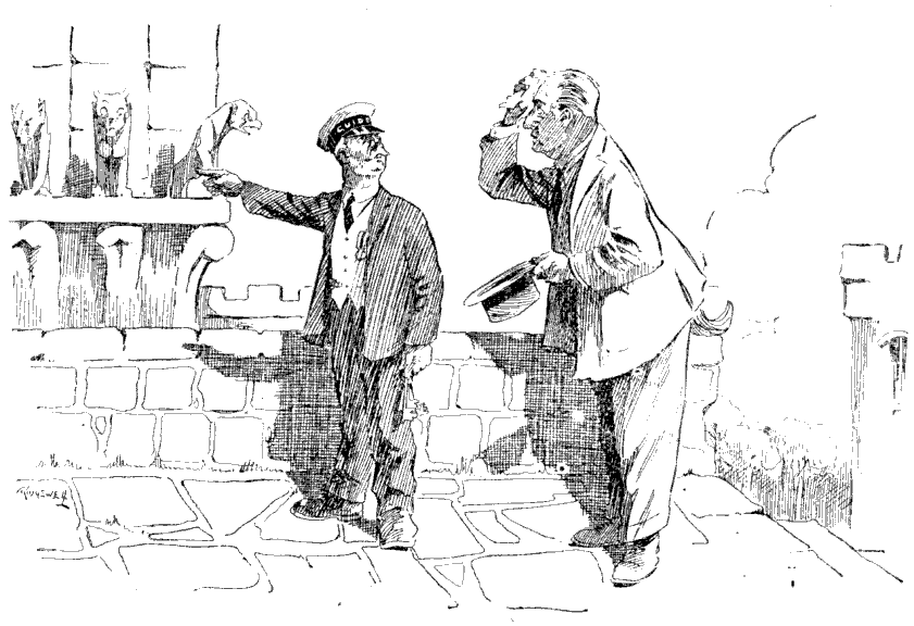 "If you refer to the other branch, the mere pulling down of houses, I say, 'No! A thousand times, no!' He should be taught that there is a crying need for a constructive, [pg 137] not a destructive policy. Let him adopt one; buy him drawing-paper and a tee-square at once, and teach him that the noblest work of creation is (unless it be a bricklayer or builder) an architect. Though the War is over we must still keep the home fires burning. This implies chimneys, and chimneys imply houses, and few there be that can plan houses that will both please the eye and pass the local authorities."