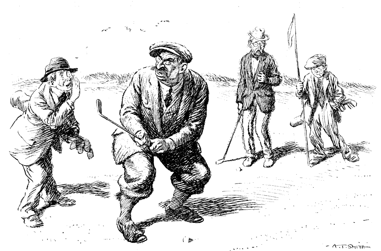 Grogtown.—All available accommodation has been monopolised by Glasborough visitors, among whom this resort is becoming more alarmingly popular every year. Sixty charabancs arrived on Monday and the Riot Act was read several times before the passengers could be induced to desist from their badinage of the residents, most of whom have since retired behind the wire-entanglements at Kelrose. The municipal orchestra was subjected to a brisk fusillade of rock-cakes on Saturday night; the conductor and several of the instrumentalists suffered contusions, and their performances have since been discontinued. This has not unnaturally given rise to a certain amount of dissatisfaction amongst the visitors, but otherwise there has been no recrudescence of rioting. A company of the Caithness Highlanders, with machine-guns, are now encamped on the links, and sunshine is all that is needed to complete the success of the season.