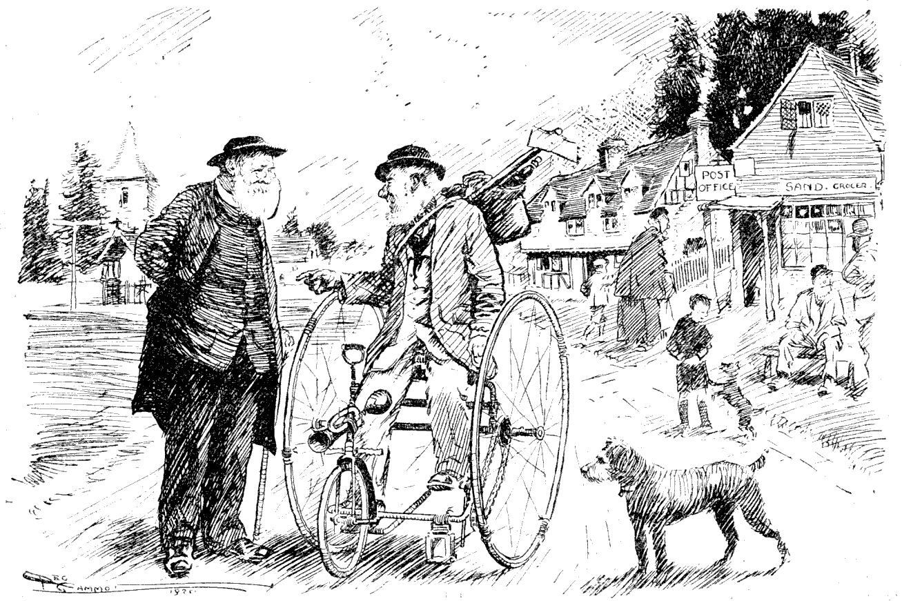 "I have just completed a fortnight's tour on a tandem, and can recommend this form of a holiday as the best I know of.... One Sunday in June, without exaggeration, I was nearly killed twice, and my wife was overcome with fright."—C.T.C. Gazette.