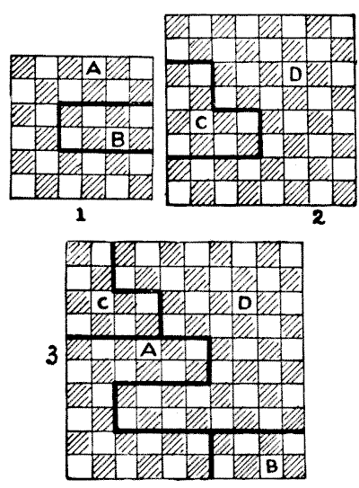 On the question of Mathematical Puzzles in general there is, perhaps, little more to be said than I have written elsewhere. The history of the subject entails nothing short of the actual story of the beginnings and development of exact thinking in man. The historian must start from the time when man first succeeded in counting his ten fingers and in dividing an apple into two approximately equal parts. Every puzzle that is worthy of consideration can be referred to mathematics and logic. Every man, woman, and child who tries to "reason out" the answer to the simplest puzzle is working, though not of necessity consciously, on mathematical lines. Even those puzzles that we have no way of attacking except by haphazard attempts can be brought under a method of what has been called "glorified trial"—a system of shortening our labours by avoiding or eliminating what our reason tells us is useless. It is, in fact, not easy to say sometimes where the "empirical" begins and where it ends.