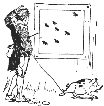 Three countrymen met at a cattle market. "Look here," said Hodge to Jakes, "I'll give you six of my pigs for one of your horses, and then you'll have twice as many animals here as I've got." "If that's your way of doing business," said Durrant to Hodge, "I'll give you fourteen of my sheep for a horse, and then you'll have three times as many animals as I." "Well, I'll go better than that," said Jakes to Durrant; "I'll give you four cows for a horse, Pg 2and then you'll have six times as many animals as I've got here."