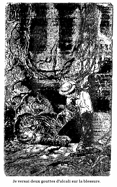 Le voir, bondir sur lui, le renverser d'un coup de griffe, l'achever d'un coup de dent, et blesser son complice fut l'affaire de quelques secondes. Dans la lutte, la mèche s'éteignit (nouveau bonheur!) et Louison très-fière de son exploit, quoiqu'elle n'en connût pas tout le prix, se montra, comme on l'a vue plus haut dans l'assemblée, et avertit le peuple de Bhagavapour du danger qu'il avait couru.