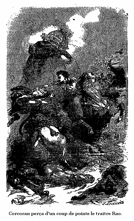 Sougriva s'en aperçut et voulait qu'on lui coupât la tête avant qu'il eut le temps de devenir dangereux; mais Corcoran s'y refusa.