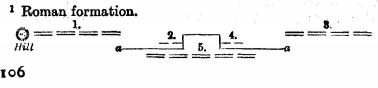 At sunrise, seeing the enemy advancing against them, they arrayed themselves as follows.[18] The extremity of the left straight trench which joined the cross trench, as far as the hill which rises here, was held by Bouzes with a large force of horsemen and by Pharas the Erulian with three hundred of his nation. On the right of these, outside the trench, at the angle formed by the cross trench and the straight section which extended from that point, were Sunicas and Aigan, Massagetae by birth, with six hundred horsemen, in order that, if those under Bouzes and Pharas should be driven back, they might, by moving quickly on the flank, and getting in the rear of the enemy, be able easily to support the Romans at that point. On the other wing also they were arrayed in the same manner; for the extremity of the straight trench was held by a large force of horsemen, who were commanded by John, son of Nicetas, and by Cyril and Marcellus; with them also were Germanus and Dorotheus; while at the angle on the right six hundred horsemen took their stand, commanded by Simmas and[21-29] Ascan, Massagetae, in order that, as has been said, in case the forces of John should by any chance be driven back, they might move out from there and attack the rear of the Persians. Thus all along the trench stood the detachments of cavalry and the infantry. And behind these in the middle stood the forces of Belisarius and Hermogenes. Thus the Romans arrayed themselves, amounting to five-and-twenty thousand; but the Persian army consisted of forty thousand horse and foot, and they all stood close together facing the front, so as to make the front of the phalanx as deep as possible. Then for a long time neither side began battle with the other, but the Persians seemed to be wondering at the good order of the Romans, and appeared at a loss what to do under the circumstances.