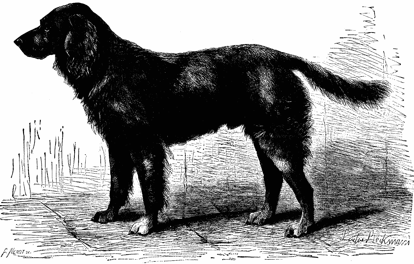 Pointers are trained to search for game, and to indicate that they have found the same by standing motionless in front of it, and, when it has been shot, to carry the game to the huntsman. Several kinds of pointers are known, such as smooth, longhaired, and bushyhaired pointers. The smoothhaired pointers are better for hunting on high land, whereas the longhaired or bushyhaired dogs are better for low, marshy countries, crossed by numerous streams, etc. Mylord, the dog represented in the annexed cut taken from the Illustrirte Zeitung, is an excellent specimen of the longhaired pointer, and is owned by Mr. G. Borcher, of Braunschweig, Germany.