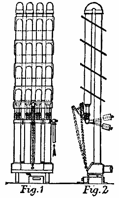 That, in consequence, machines having wing planes, driven against one inertia of air by screws acting in the line, of flight against another inertia of air, lose fifty per cent. of useful effect, besides exposing to a head wind the cross section of the stationary screw wing planes and the rotating screw discs; and supporting the dead weight of the wing planes, and having all the screw slip in the line of flight, and carrying slow and heavy engines.