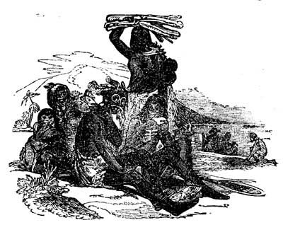 The poor inhabitants, a simple and innocent people, with copper-coloured skins and long black hair, not curled, like the negroes, but floating on their shoulders, or bound in tresses round their heads, came flocking down to the beach and stood gazing in silent admiration.