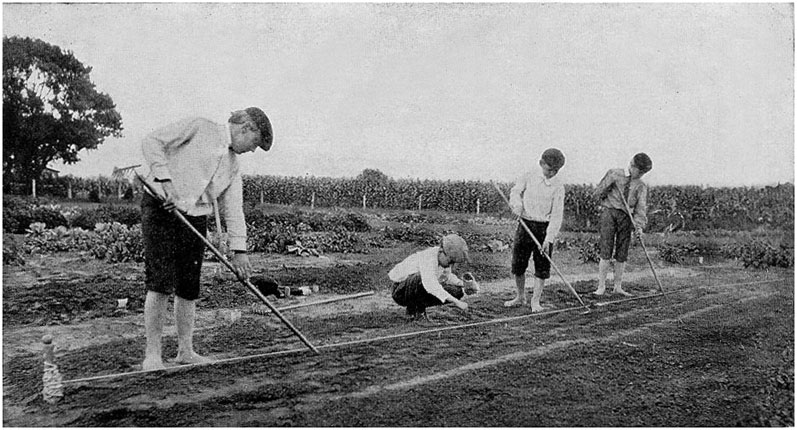 In putting in a drainage system the first thing to be done is to make a plan of the ground and determine the slope of the land and the grade of the drain. The ditches are then staked out and the digging proceeds. In digging the ditches plows are sometimes used to throw out the top soil, then the work is finished with spades and shovels.