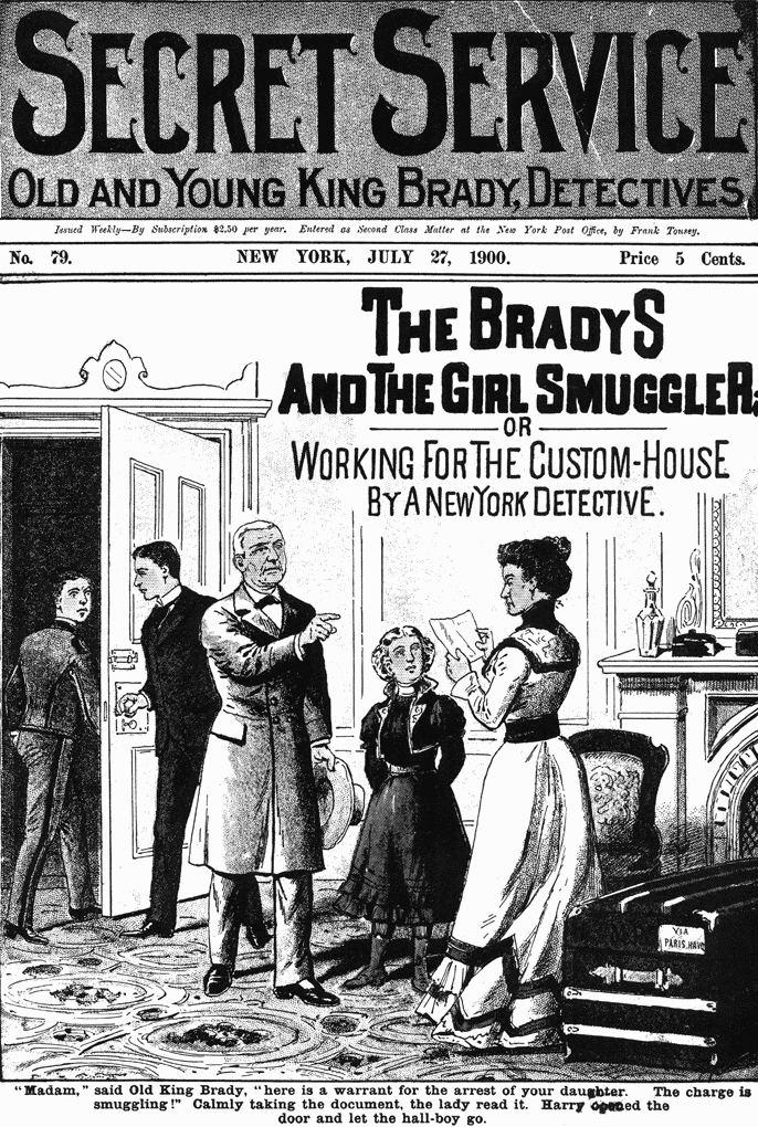 "Madam," said Old King Brady, "here is a warrant for the arrest of your daughter. The charge is smuggling!" Calmly taking the document, the lady read it. Harry opened the door and let the hall-boy go.