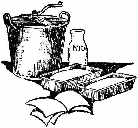 Method—Put lard, butter, salt and sugar into large bowl. Pour over them the scalded milk and boiling water. When this is lukewarm add the yeast cake dissolved in luke-warm water. Sift in flour gradually, beating with a spoon. Toss on a floured board and knead until smooth. Allow it to rise over night in a moderately warm place or until it doubles its original size. Cut down or knead and allow it to rise until light, then form into loaves or biscuits. Allow these to rise until light, then bake. The amount of yeast used will depend on the length of time the bread is allowed to rise.