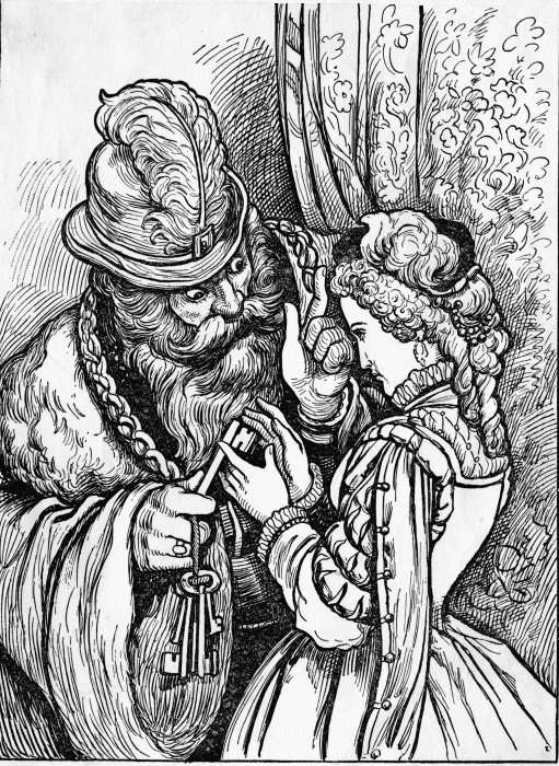 "One moment longer," said his wife, and then she cried out, "Anne, sister Anne, dost thou see nobody coming?"