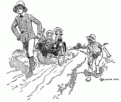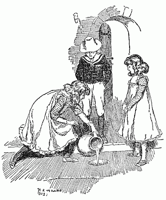 Anthea found Cyril glooming over his paper boats, and told him. Jane told Robert. The two tales were only just ended when mother walked in, hot and dusty. She explained that as she was being driven into Rochester to buy the girls' autumn school-dresses the axle had broken, and but for the narrowness of the lane and the high soft hedges she would have been [Pg 310]thrown out. As it was, she was not hurt, but she had had to walk home. "And oh, my dearest dear chicks," she said, "I am simply dying for a cup of tea! Do run and see if the water boils!"