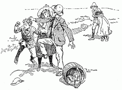 At a brisk trot she led the way to the sand-pit. Oh, joy!—there was the Psammead, basking in a golden sandy hollow and preening its whiskers happily in the glowing afternoon sun. The moment it saw them it whisked round and began to burrow—it evidently preferred its own company to theirs. But Anthea was too quick for it. She caught it by [Pg 305]its furry shoulders gently but firmly, and held it.