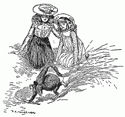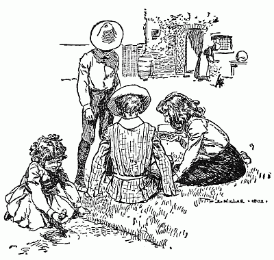 The children dug and they dug and they dug, and their hands got sandy and hot and red, and their faces got damp and shiny. The Lamb had tried to eat the sand, and had cried [Pg 10]so hard when he found that it was not, as he had supposed, brown sugar, that he was now tired out, and was lying asleep in a warm fat bunch in the middle of the half-finished castle. This left his brothers and sisters free to work really hard, and the hole that was to come out in Australia soon grew so deep that Jane, who was called Pussy for short, begged the others to stop.