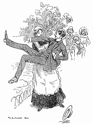 "I was a-goin' to give you warning this very day, mum, to leave at the end of my month, so I was,—on account of me being going to make a respectable young man happy. A gamekeeper he is by trade, mum—and I wouldn't deceive you—of the name of Beale. And it's as true as I stand here, it was your coming home in such a hurry, and no warning given, out of the kindness of his heart it was, as he says, 'Martha, my beauty,' he says,—which I ain't, and never was, but you know how them men will go on,—'I can't see you a-toiling and a-moiling and not lend a 'elping 'and; which mine is a strong arm, and it's yours Martha, my dear,' says he. And so he helped me a-cleanin' of the windows—but outside, mum, the whole time, and me in; if I never say another breathing word it's gospel truth."