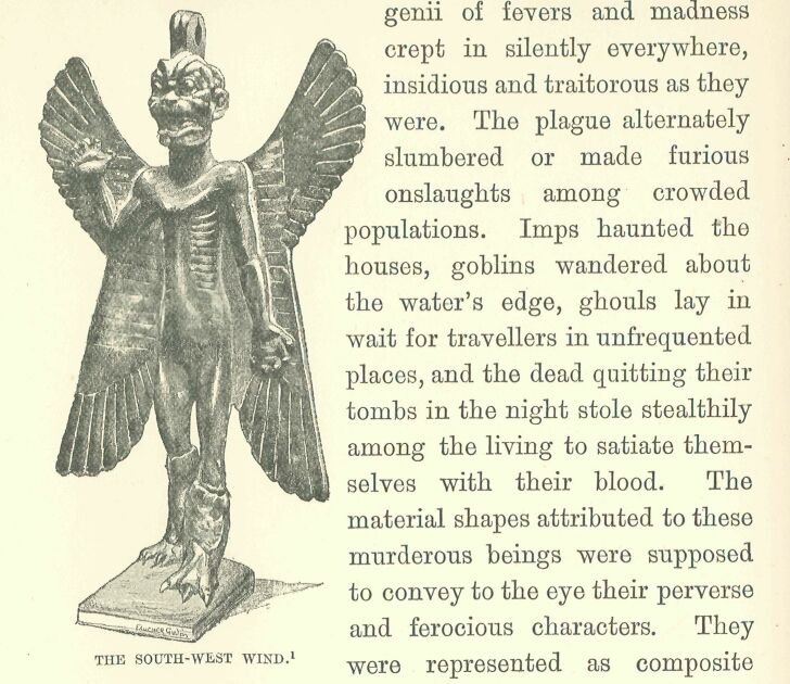 Chaldæa abounded with soothsayers and necromancers no less than with astrologers; she possessed no real school of medicine, such as we find in Egypt, in which were taught rational methods of diagnosing maladies and of curing them by the use of simples. The Chaldaeans were content to confide the care of their bodies to sorcerers and exorcists, who were experts in the art of casting out demons and spirits, whose presence in a living being brought about those disorders to which humanity is prone. The facial expression of the patient during the crisis, the words which escaped from him in delirium, were, for these clever individuals, so many signs revealing the nature and sometimes the name of the enemy to be combated—the Fever-god, the Plague-god, the Headache-god. Consultations and medical treatment were, therefore, religious offices, in which were involved purifications, offerings, and a whole ritual of mysterious words and gestures. The magician lighted a fire of herbs and sweet-smelling plants in front of his patient, and the clear flame arising from this put the spectres to flight and dispelled the malign influences, a prayer describing the enchantments and their effects being afterwards recited. “The baleful imprecation like a demon has fallen upon a man;—wail and pain have fallen upon him,—direful wail has fallen upon him,—the baleful imprecation, the spell, the pains in the head!—This man, the baleful imprecation slaughters him like a sheep,—for his god has quitted his body—his goddess has withdrawn herself in displeasure from him,—a wail of pain has spread itself as a garment upon him and has overtaken him!” The harm done by the magician, though terrible, could be repaired by the gods, and Merodach was moved to compassion betimes. Merodach cast his eyes on the patient, Merodach entered into the house of his father Ea, saying: “My father, the baleful curse has fallen like a demon upon the man!” Twice he thus speaks, and then adds: “What this man ought to do, I know not; how shall he be healed?” Ea replies to his son Merodach: “My son, what is there that I could add to thy knowledge?—Merodach, what is there that I could add to thy knowledge?—That which I know, thou knowest it:—go then, my son, Merodach,—lead him to the house of purification of the god who prepares remedies,—and break the spell that is upon him, draw away the charm which is upon him,—the ill which afflicts his body,—which he suffers by reason of the curse of his father,—or the curse of his mother,—or the curse of his eldest brother,—or by the curse of a murderess who is unknown to the man.—The curse, may it be taken from him by the charm of Ea,—like a clove of garlic which is stripped skin by skin,—like a cluster of dates may it be cut off,—like a bunch of flowers may it be uprooted! The spell, may heaven avert it,—may the earth avert it!” The god himself deigned to point out the remedy: the sick man was to take a clove of garlic, some dates, and a stalk bearing flowers, and was to throw them into the fire, bit by bit, repeating appropriate prayers at each stage of the operation. “In like manner as this garlic is peeled and thrown into the fire,—and the burning flame consumes it,—as it will never be planted in the vegetable garden, it will never draw moisture from the pond or from the ditch,—its root will never again spread in the earth,—its stalk will not pierce the ground and behold the sun,—it will not serve as food for the gods or the king,—so may it remove the baleful curse, so may it loose the bond—of sickness, of sin, of shortcomings, of perversity, of crime!—The sickness which is in my body, in my flesh, in my muscles,—like this garlic may it be stripped off,—and may the burning flame consume it in this day;—may the spell of the sorcerer be cast out, that I may behold the light!” The ceremony could be prolonged at will: the sick person pulled to pieces the cluster of dates, the bunch of flowers, a fleece of wool, some goats’ hair, a skein of dyed thread, and a bean, which were all in turn consumed in the fire. At each stage of the operation he repeated the formula, introducing into it one or two expressions characterizing the nature of the particular offering; as, for instance, “the dates will no more hang from their stalks, the leaves of the branch will never again be united to the tree, the wool and the hair will never again lie on the back of the animal on which they grew, and will never be used for weaving garments.” The use of magical words was often accompanied by remedies, which were for the most part both grotesque and disgusting in their composition: they comprised bitter or stinking wood-shavings, raw meat, snake’s flesh, wine and oil, the whole reduced to a pulp, or made into a sort of pill and swallowed on the chance of its bringing relief. The Egyptian physicians employed similar compounds, to which they attributed wonderful effects, but they made use of them in exceptional circumstances only. The medical authorities in Chaldæa recommended them before all others, and their very strangeness reassured the patient as to their efficacy: they filled the possessing spirits with disgust, and became a means of relief owing to the invincible horror with which they inspired the persecuting demons. The Chaldæans were not, however, ignorant of the natural virtues of herbs, and at times made use of them; but they were not held in very high esteem, and the physicians preferred the prescriptions which pandered to the popular craving for the supernatural. Amulets further confirmed the effect produced by the recipes, and prevented the enemy, once cast out, from re-entering the body; these amulets were made of knots of cord, pierced shells, bronze or terra-cotta statuettes, and plaques fastened to the arms or worn round the neck. On each of the latter kind were roughly drawn the most terrible images that they could con