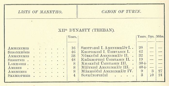 From the VIth to the XIIth dynasty, the lists of Manetho are at fault: they give the origin and duration of the dynasties, without furnishing us with the names of the kings.