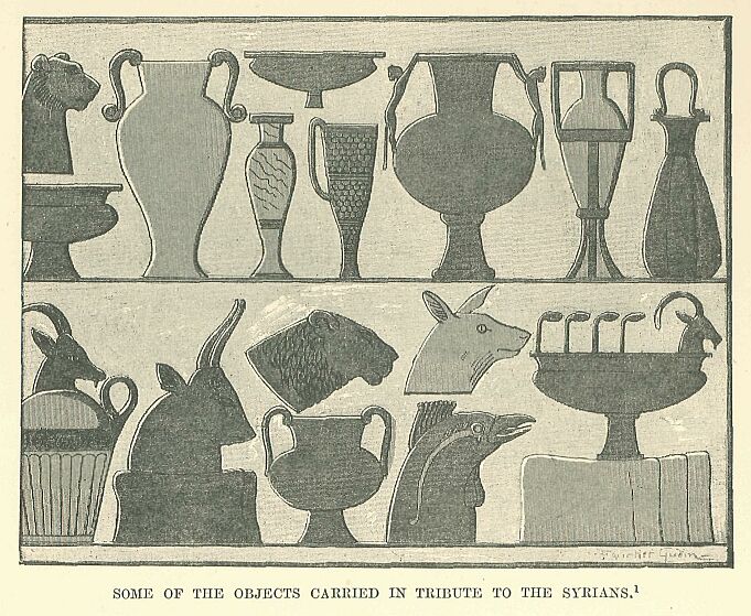 His men were placed under canvas, and working under the protection of immense shields, supported on posts, they made a ditch around the walls, strengthening it with a palisade. The king constructed also on the east side a fort which he called “Manakhpirrî-holds-the-Asiatics.” Famine soon told on the demoralised citizens, and their surrender brought about the submission of the entire country. Most of the countries situated between the Jordan and the sea—Shunem, Cana, Kinnereth, Hazor, Bedippa, Laish, Merom, and Acre—besides the cities of the Haurân—Hamath, Magato, Ashtarôth, Ono-repha, and even Damascus itself—recognised the suzerainty of Egypt, and their lords came in to the camp to do homage.*