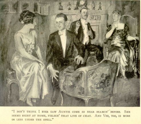 Say, I'd even forgot who all I'd asked to be on hand. That was what I was checkin' up when I rode past Auntie's floor on the elevator. I finds Vee some excited and more or less curious.