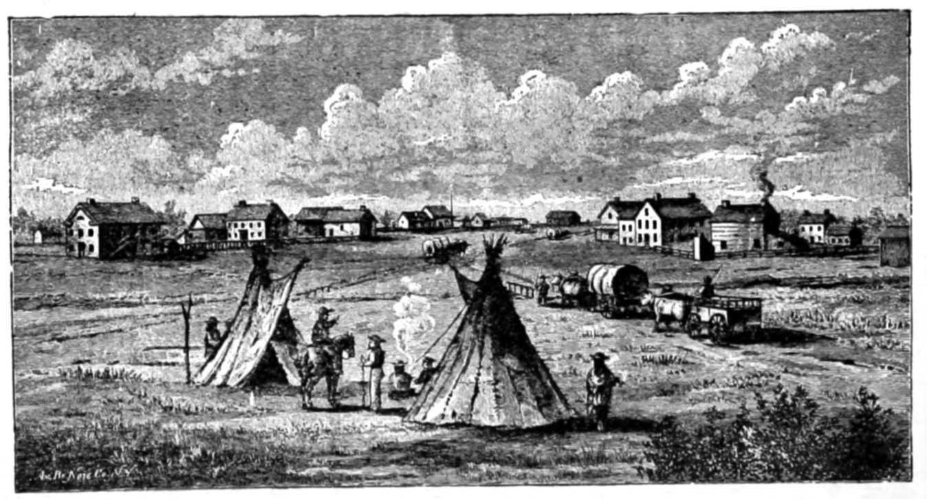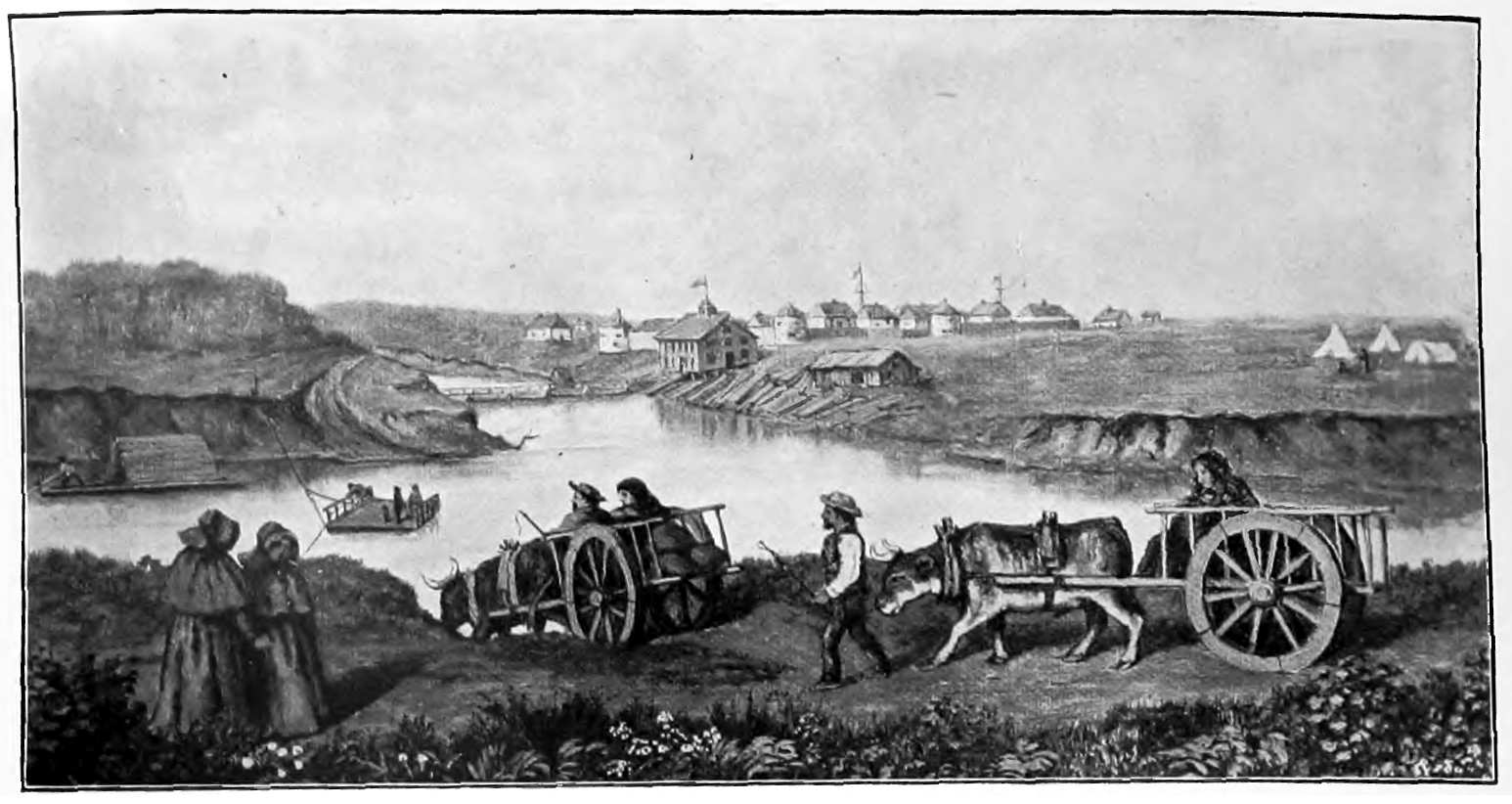 The Assiniboine falls into the Red River, a larger stream, also with tawny-colored water. The point of union of these two rivers was long ago called by the French voyageurs "Les Fourches," which we have translated into "The Forks."